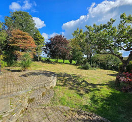 To the side of the property double gates lead to a private parking area and the rear garden. The garden is of a good size and mainly lawned with a variety of mature trees and shrubs. Two sheds provide useful spaces for garden tools or furniture. The gardens border open parkland-style countryside and there are pleasant distant views towards Dartmoor National Park.