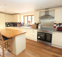 The house offers spacious living accommodation and is presented in a classic style with attractive woodwork throughout, including ceiling beams, oak windows, doors and the stairway balustrade, all very much in keeping with the original architecture. From the entrance hallway, oak flooring, with underfloor heating, leads into the superb farmhouse kitchen, beautifully fitted in a shaker cream style with integral appliances and plenty of space for a large dining table and chairs.