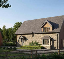 A detached ‘stone barn style’ house, approximately 1647 sq. ft (153m²), offering 3 double bedrooms, the master with an en-suite shower room, a family bathroom, a large kitchen dining room, utility, lounge with doors opening to the garden, a study and a shower room on the ground floor.