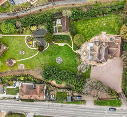 Externally, the property is approached via twin gates leading through to the extensive block-paved driveway providing off-street parking for numerous vehicles, access to the double garage with twin doors. The gardens are south-facing and landscaped, mainly laid to lawn with an abundance of flower and shrub areas, large pond with bridge over, sun terraces, a circular garden room, a detached brick-built garden store and a unique raised garden room with stairs rising to a large timber decked area. This room has power and light connected. There is a further outbuilding with a gymnasium with power and lighting connected.