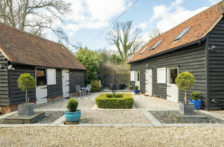 The property is approached from Grayswood village hall car park where coded automatic gates leads into the property where the garden is mainly shingled. Centrally between the Hay Barn & Hay loft is an attractive rectangular paved edged feature with box hedging. There is an area of raised decking for outside dining and a parking area to the right of the larger barn with ample additional parking
