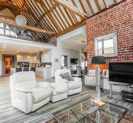 Beyond a traditional five-bar gate and approached by a long, gravelled sweep of driveway, this extraordinary barn conversion, converted in 2018, sits effortlessly within its own gardens and grounds of around 3.5 acres (stms). A masterful union of period brick and flint with refined modern design, the house offers an elegant rural lifestyle defined by space, light and architectural integrity.