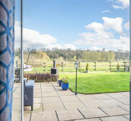 The impressive sitting room is flooded with natural light through its dual-aspect design, with French doors opening onto the patio and rear garden. Enjoying uninterrupted views across the lakes and surrounding countryside, this elegant space is currently arranged to incorporate dining, offering excellent versatility. The seamless transition between indoors and out makes it ideal for entertaining, with guests able to move effortlessly between the house and garden while taking in the exceptional setting.