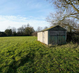 There is an existing corrugated metal shed measuring approximately 10m x 5m, and old caravan stored just behind. There is also a small Nissen hut and a sectional concrete garage.