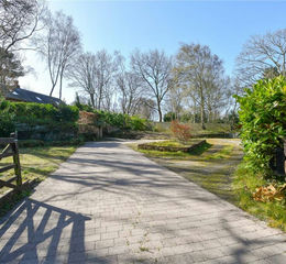 The grounds envelop the home, creating a peaceful, woodland-like setting. To the front, a patio area offers the perfect vantage point to relax and take in the panoramic views, making it an ideal space for outdoor entertaining or quiet reflection. The property also benefits from a substantial adjoining plot to the side, offering potential for development or business use, subject to the necessary planning permissions. The land (approx 1 acre) is currently used by the owners to keep sheep and has it's own access via Sandy Lane North.