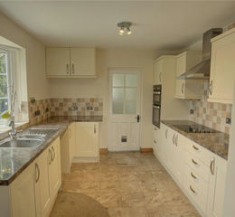 Dual aspect uPVC double glazed windows to the front and side, oil fired boiler, low level and wall mounted kitchen units, roll top work surfaces, space for upright fridge/freezer, tiled flooring, glass panel door to garden.