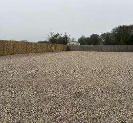 To the front is a large shingle car park with space for 25 -30 spaces as well as front patio area, along with outbuildings for further storage.