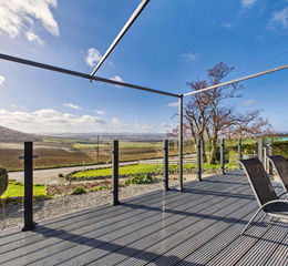 The property enjoys a pretty wrap around landscaped garden with a mix of mature lawns, spring bulbs, perennials, trees, including apple, pear, plum and wild cherry, and shrubs along with dry stone dykes. There is a large sheltered seating area that is perfect for summer BBQ's or alfresco ding with direct access to the kitchen/diner. To the front is a large area of decking with feature glass balustrades and this is the prime spot to sit and relax with a refreshment and take in those glorious views. There is also a large timber shed for storage and log store.