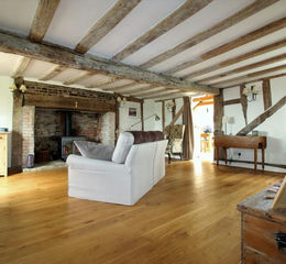 With windows to front and side aspects with views over the garden and fields, Inglenook fireplace, exposed beams and stud work, English Oak wood flooring, tv point, radiator.