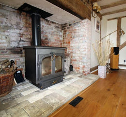 With windows to rear and front aspects, door to rear aspect, Inglenook fireplace with wood burning stove inset, wooden flooring, exposed beams, radiator.
