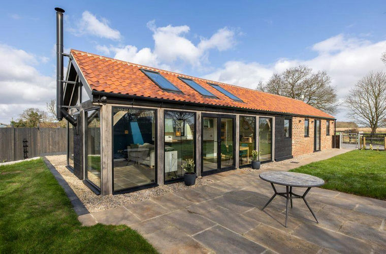The former barn which occupied the site was converted around a little over a year ago, and an oak-framed extension added to create this spectacular and light-filled, single storey home, which has a real focus on energy efficiency. The property features high-quality aluminium double-glazed windows, high-levels of insulation and stone flagged floors with zoned underfloor heating, powered by an air-source heat pump.