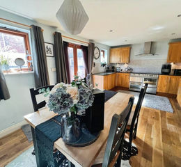 The ground floor of The Byre offers a well-designed and inviting living space, combining character with modern comfort. At its heart is a spacious open-plan cottage kitchen diner complete with granite worktops and solid oak cupboards, ideal for both everyday living and entertaining, with double doors that open directly onto the garden, allowing natural light to flow through. A separate living room provides a cosy retreat, featuring oak flooring and direct access to the patio, creating a seamless connection between indoor and outdoor spaces. The ground floor is completed by a convenient cloakroom, enhancing practicality for guests and day-to-day use.