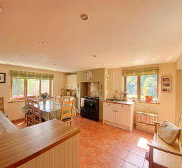 The accommodation is bright and thoughtfully arranged. There are three well-proportioned double bedrooms, plus an adaptable ground-floor room that can be used as a fourth bedroom, study, or creative space. The heart of the home is an open-plan living and dining area that flows into a well-appointed kitchen and separate utility. A recently installed log burner creates a welcoming focal point, ideal for cosy evenings. Upstairs, the main bedroom enjoys an en-suite and views over the surrounding land.