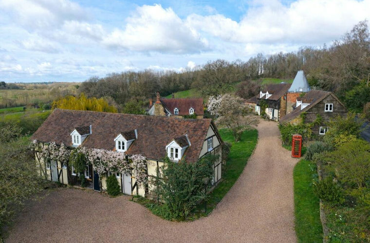 Sleeps 6 - The ground floor of the property comprises living room and kitchen – formerly the hop kiln. On the first floor the circular bathroom is also within the former hop kiln. In addition, there are three bedrooms and a further shower room.