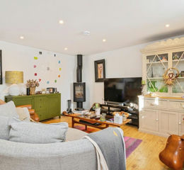 You enter the property via a hardwood front door into a useful entrance area with space to store coats and shoes. The open plan living space occupies most of the ground floor with a useful separate utility/cloakroom. The living area is focused around a contemporary woodburning stove which is a lovely focal point for the room. The kitchen/dining area is well appointed with a range of fitted shaker style cabinets and an integrated electric oven and hob. The utility/cloakroom offers a convenient downstairs loo, accommodates the boiler, and has plumbing for a washing machine away from the main living space.