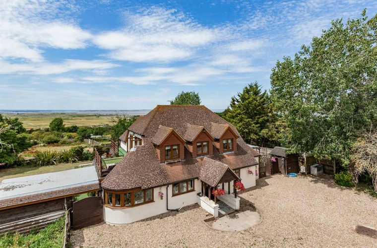 Treetops occupies a secluded position, offering far-reaching views across open countryside to the sea from the principal rooms, garden and balconies – the perfect vantage point to enjoy the area's renowned sunsets. Set within a substantial plot of approximately one acre, the grounds are currently arranged to include a formal garden, three paddocks (one featuring ten purpose-built dog kennels) and a large front garden providing ample parking for multiple vehicles.