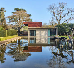 Shortlisted for the RIBA House of the Year Award in 2018, Pheasants is a truly singular home nestled in the Chilterns National Landscape. Its striking S-shaped concrete form was designed by Sarah Griffiths & Amin Taha and almost hovers above the carefully landscaped grounds that surround it, with broad swathes of glazing setting inside and out in unbroken dialogue with one another. The garden is home to a reflection pool, an enfilade of terraces, and a striking Corten pavilion that projects the home’s warm and surprisingly delicate silhouette.