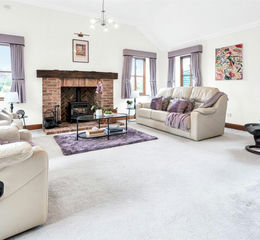 A most impressive, individual, architect designed detached house, standing in beautiful gardens of over 1 acre, in an attractive rural position abutting countryside. Presenting mellow red brick elevations under plain tiled roofs, this immaculately presented property has been much improved by the current vendors and boasts substantial accommodation of over 3,700 sq ft plus an office/gym over the triple garage. Built to an exceptionally high standard and specification 30 years ago, a programme of updating was carried out in 2016, to include a new kitchen, bathrooms and the addition of a conservatory. Prominent features of the property include a 30’ kitchen/breakfast /family room, four double bedrooms, four reception rooms, underfloor heating on the ground floor, alarm system, triple garage with room over, currently used as a gym but would make an ideal home office and beautiful grounds abutting undulating farmland.