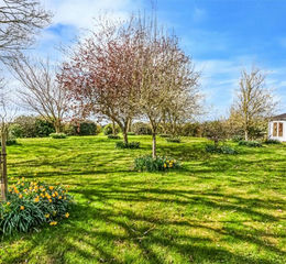 Old Clamp House is approached through an automatically operated five bar gate onto a gravel driveway and large parking area for numerous vehicles, a triple garage with three automatically operated up and over doors and has windows to the side and rear aspects and water connected. An outside staircase leads to a room above the garage measuring over 31’ by 13,’ which is currently used as a gym but would make an ideal home office. The remaining gardens to the front have areas of lawn with flowers and shrub borders. The extremely large rear garden is predominantly laid to lawn with well stocked flower and shrub beds and borders, mature trees, summer house, large machinery store, garden shed, greenhouse and there is a large terrace area with retaining wall abutting the rear of the property, making an ideal alfresco entertaining area. There is mature hedging to the boundaries and the gardens abut undulating countryside to the side and rear boundaries. In all about 1.07 acres.