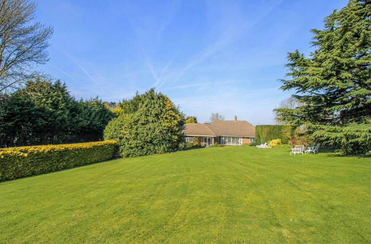 The bungalow itself is approached via a central reception hall leading through to a spacious living room overlooking the rear gardens. An adjoining dining room opens into a separate garden room, both enjoying views across the gardens. The kitchen is fitted with a comprehensive range of units and overlooks the front of the property, complemented by a large utility and boot room which serves as a practical everyday entrance. The bedroom accommodation is well arranged, with one wing comprising a generous principal bedroom with adjoining dressing room (formerly a fifth bedroom), a further double bedroom and the house bathroom. A separate inner hallway to the rear leads to two additional double bedrooms and a well appointed shower room.