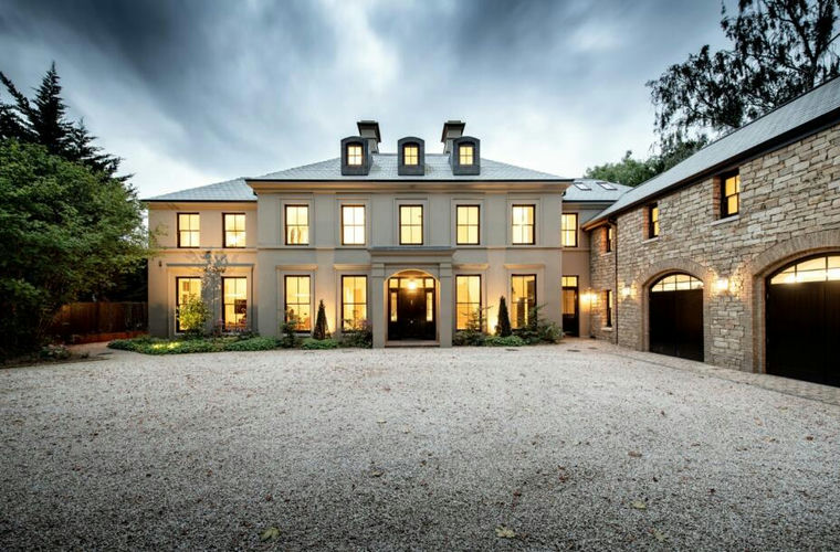 Rendered elevations, stone detailing and dormered rooflines give the house a refined, European-influenced aesthetic, while full-height Crittal style glazing subtly introduces a contemporary edge.