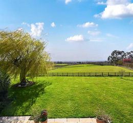 The gardens wrap around the rear and side of the house, predominantly laid to lawn and gently sloping down towards the paddocks. A private seating area and rear terrace provide ideal spots to enjoy the open outlook, with a mature willow tree adding charm and character to the setting.