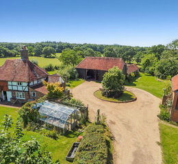 Calcot Farmhouse is an historic rural gem occupying a beautiful and peaceful rural spot nestling amongst Sussex countryside with distant views to the South Downs from parts and yet is within just 3.25 miles of the fine old market town of Steyning. Grade II Listed, the handsome 4-bedroom farmhouse nestles in the middle of its plot extending overall to c. 5.30 acres and including a cluster of other fine old period buildings including the adjacent 2-bedroom converted Granary and then the fine 4-bay Sussex Barn with adjoining single storey byres and workshops. As part of the magical position there are delightful gardens and grounds including areas of mature and younger mixed broadleaf tree planting with a mass of spring bluebells and part stream frontage.