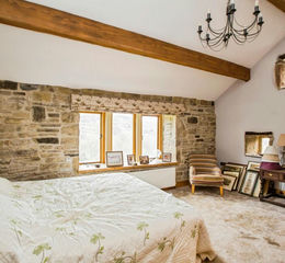 The farmhouse provides four generous double bedrooms and four beautifully appointed bath/shower rooms, arranged over two floors. Many of the home’s original architectural features remain, including exposed stone walls, traditional mullion windows, owl hole windows characteristic of historic rural buildings, timber beams, and exposed roof trusses, all celebrating the building’s rich 17th-century heritage.