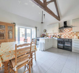 Beautifully extended and maintained to a high standard throughout, the property provides generous and versatile accommodation arranged over two floors. Upon entering, a welcoming entrance hall leads through to the heart of the home — an impressive open plan kitchen and living space. The kitchen is a standout feature, boasting vaulted ceilings with exposed beams, a comprehensive range of fitted units, breakfast bar, and a range-style cooker, all complemented by patio doors opening onto the rear garden.