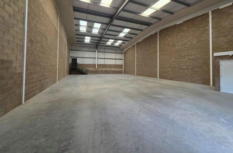 This modern industrial unit offers a clean, well-presented interior designed for flexibility and efficiency. The space features a generous open-plan layout with a high-clearance steel frame roof, allowing excellent vertical capacity for storage, racking, or light industrial operations.