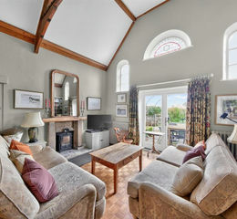 The Property - The Old Chapel is a fine example of a converted former chapel in a lovely rural village. The house has been lovingly maintained with great attention to detail and unusually has over an acre of land with separate lane access. The entrance hall doubles as the dining hall, open plan to the kitchen which offers a breakfast bar leading to wall and floor units with an oil fired Stanley range, electric oven and induction hob as well as the usual other appliances. Beyond is the boot room / conservatory which leads to the south facing garden. The sitting room has vaulted ceilings giving great light. A fine stone fire surround houses the wood burning stove, parquet flooring gives stature and there is a hand crafted workstation / bookshelves along one wall. Behind the stairs and out of sight is the 2nd bedroom wing with adjacent shower room.