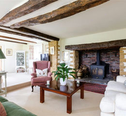 Upstairs, the principal bedroom enjoys beautiful dual aspect views over the surrounding hills and comprises a generous selection of fitted wardrobes and an ensuite shower room with large walk-in shower. Three further double bedrooms also benefit from the lovely garden and country views and share a family bathroom with separate bath and shower. The décor throughout the house is tastefully neutral, creating a light and spacious feel, enhanced by historical features such as exposed beams and stone sections, deep windows with oak lintels and country cottage doors throughout.