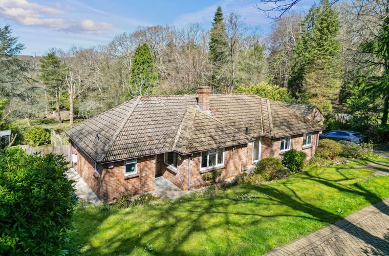 DESCRIPTION: An individual detached bungalow understood to have been built in the 1950's, enjoying a delightful rural setting off a quiet country lane, with elevated views to the rear over secluded woodland gardens of around an acre. It is considered that the loft space would lend itself to conversion (subject to the necessary consents from the local authority).