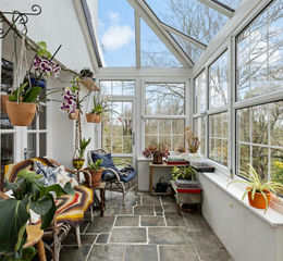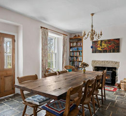 Frank Mills House offers bright and well-proportioned accommodation, with a lovely sense of character that reflects its origins as two cottages that were thoughtfully brought together to form one home. Large windows draw in the natural light and frame views of the surrounding gardens and valley, giving the house a warm and uplifting feel throughout.