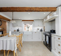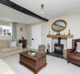Ground Floor - Upon entering, you are welcomed into a bright and spacious entrance hall featuring original terracotta flooring, immediately setting the tone for the character found throughout the home. The main entrance hall is rich in charm, showcasing exposed beams and a multi-level layout, with doors leading to the ground floor accommodation including a convenient downstairs cloakroom with wash basin and WC. Off the entrance hall, the kitchen/breakfast room and utility room/pantry can be found. The stunning kitchen/breakfast room is fitted with bespoke, high specification shaker style units complemented by marble worktops and limestone flooring. A double Belfast-style sink overlooks the front aspect, while additional features include an electric fireplace, exposed brickwork, and a charming original bread oven. An original staircase, that is no longer in use, has been transformed into a stunning focal point with a glazed door, adding an elegant feature to the kitchen area. This creative conversion has been changed into practical shelving, perfect for displaying your favourite books, decorative ornaments or even wine. Integrated appliances include a dishwasher and a Smeg range cooker. A rear door provides direct access to the garden. The utility room/pantry is a spacious and light filled room with a beautiful stained-glass window. It has been thoughtfully designed with bespoke cabinetry built around an original butcher’s block, along with space and plumbing for an American-style fridge freezer, washing machine, tumble dryer and additional storage. To the front of the property, the dining room features the same original terracotta tiled flooring and offers an abundance of natural light from a large front window and French doors opening onto the rear garden. A striking exposed brick fireplace with a log burner creates a wonderful focal point. This room also provides access to the first floor and an understairs storage cupboard. The living room is equally inviting, benefiting from dual aspect windows and a log burner, creating a cosy yet spacious family space.