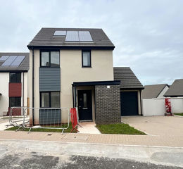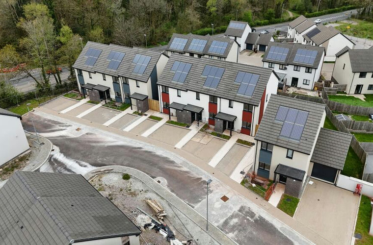 A partially finished development site consisting of 13 new build residential properties, all of differing sizes and stages of completion, located in Tamerton Foliot, Plymouth.