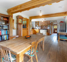 Orchard Cottage combines traditional character with modern design, featuring exposed timbers, a striking brick fireplace and a superb handmade oak kitchen with AGA. Built in 2007/2008, the house has been designed with an emphasis on light and space, with open plan living areas enjoying views over the gardens and adjoining farmland.