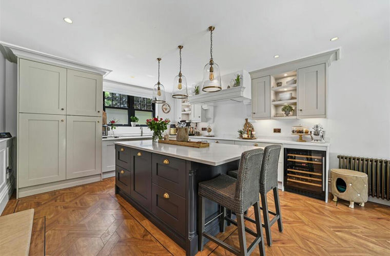 Set within private grounds approaching an acre and surrounded by tranquil countryside, Pond Farm House is a beautifully reimagined family home. Lovingly renovated throughout, this elegant family residence features a bespoke kitchen and dining space at its heart, complemented by stylish reception rooms and luxurious finishes that create warmth and sophistication in equal measure.
