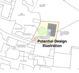 The most likely proposed use is a 2 or 3 bedroom bungalow, considered the optimal concept given local housing need, the village's ageing demographic, and Neighbourhood Plan Policy H3.
