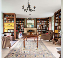 Accommodation - A very pretty barn conversion perfectly renovated and modernised by the current owner to suit modern family living. The property is approached through a five-bar gate, onto a drive that sweeps down through to the parking and the garaging. You enter the house into an impressive dining hall, which immediately sets the warmth of this stunning home and leads through to the main living areas. The beautiful sitting room, with its striking stone inglenook fireplace and fitted log burner leads into a cosy snug and impressive library. This room is a real highlight of the home with a Minster stone fireplace, woodburning stove, extensive bookshelves and dual aspect windows. The kitchen is a space designed for both cooking and entertaining and features a central island, a good range of units fitted with an inset stainless-steel sink and drainer, hob with cooker hood, two ovens and an integral fridge. As you would expect for a house of this size, there is both a boot room, perfect after a muddy winter’s walk, as well as a utility room, which has a stainless-steel sink and space for the washing machine and tumble dryer and to complete the ground floor accommodation, a study for peace and quiet when working from home.