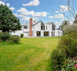 The home offers impressive open-plan living, with a stunning kitchen and dining area designed to maximise natural light and views across the rear garden, ideal for both everyday living and entertaining. The ground floor also includes a welcoming reception hall, formal sitting room, snug, study/playroom, utility room and WC, along with a detached double garage with an automated door.