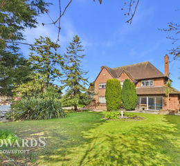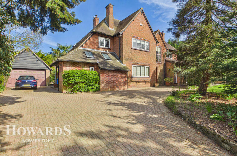 The first floor is equally impressive, featuring a large galleried landing that enhances the sense of space and grandeur, leading to four generous bedrooms and three well-appointed bathrooms. A vast boarded loft space offers exciting scope for further accommodation, subject to the usual permissions. Outside, the home continues to excel, with beautifully manicured and meticulously maintained gardens to both the front and rear, creating a private and picturesque setting. A sweeping driveway provides extensive off-road parking and leads to a substantial detached double garage. To the rear, the clearly defined building plot (see east Suffolk planning portal DC/23/4261/FUL for full details) presents a rare and lucrative opportunity for further development.