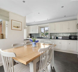Extended Dining Kitchen - 5.01m max x 4.99m max (16'5" max x 16'4" max) - A lovely light and extended room with windows to all aspects, side aspect double glazed French doors to private rear garden patio with space for table and chairs to enjoy al fresco dining over the garden, Recessed ceiling downlighters, picture rail. Bespoke Jon Riley fitted kitchen comprising of wide range of floor and wall mounted cream units under a dark granite work top. One and a half bowl sink unit with mixer tap over, integral hob with discrete extractor over, integral oven, integral dishwasher, integral fridge, integral freezer, contemporary wall mounted radiator, second radiator, space for breakfast table and chairs, tiled floor.