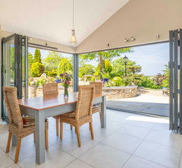 Similarly the ‘glasshouse’ formal dining room is heavenly, having patio doors opening out to the main seating area. With high ceilings and floor to ceiling glasswork, this room has an intimate, relaxed and welcoming feel and opens out onto the patio seating area to indulge those glorious views!