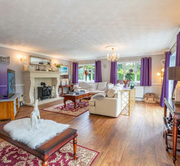 With window to the fore and patio doors to the side offering access to the lawned gardens. The warm walnut flooring continues, radiator and ceiling light point, a relaxing social space ideal for those dinner parties and after dinner drinks.