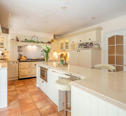 - Impressive open plan bespoke, hand finished kitchen with 5 oven AGA, Quartz work surfacing over central breakfast bar.