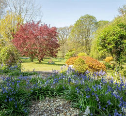 Outside - The glorious gardens surround the property and have clearly been a labour of love for the current owner. With many specimen trees, climbers such as Passionflower and mature Wisterias, Rhododendron, Azaleas, Camelias and Acers, all underplanted with spring bulbs meaning the gardens are a riot of colour and all year round interest. The sweeping lawns gently slope down towards the meandering brook that forms the western boundary, providing a beautiful outlook from many rooms of the house.