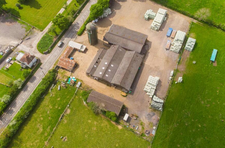 - A range of large agricultural barns