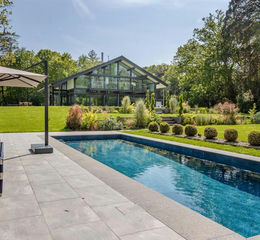 The house is set in 5.5 acres of landscaped grounds including terraced lawns leading down to the outdoor heated swimming pool with large terrace ideal for seating and dining, as well as adjacent pool house with bar, seating area, changing room and shower room.