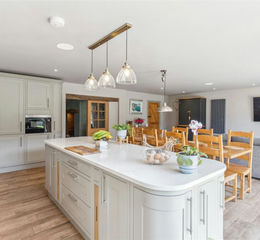 Spacious kitchen/dining room with Shaker-style units and pantry